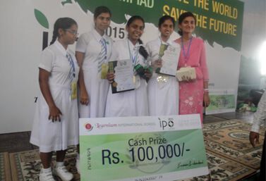 Caroline Fernando and Haridharshana Nagendran students of grade 12 English Medium -Science won 1st place at the Inter Schools Environmental Science project Olympiad 2015, organized by Learnium International School. They introduced ‘Go green detergents’. This novel concept has paved the way for a range of eco-friendly and harmless products – a valuable contribution to reduce the effect of harmful pollutants on our environment.
