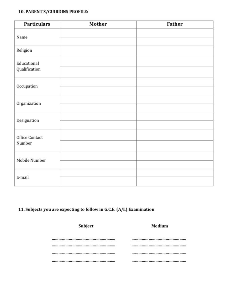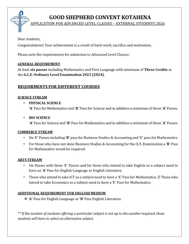 APPLICATION FOR A/L CLASSES – EXTERNAL STUDENTS 2026